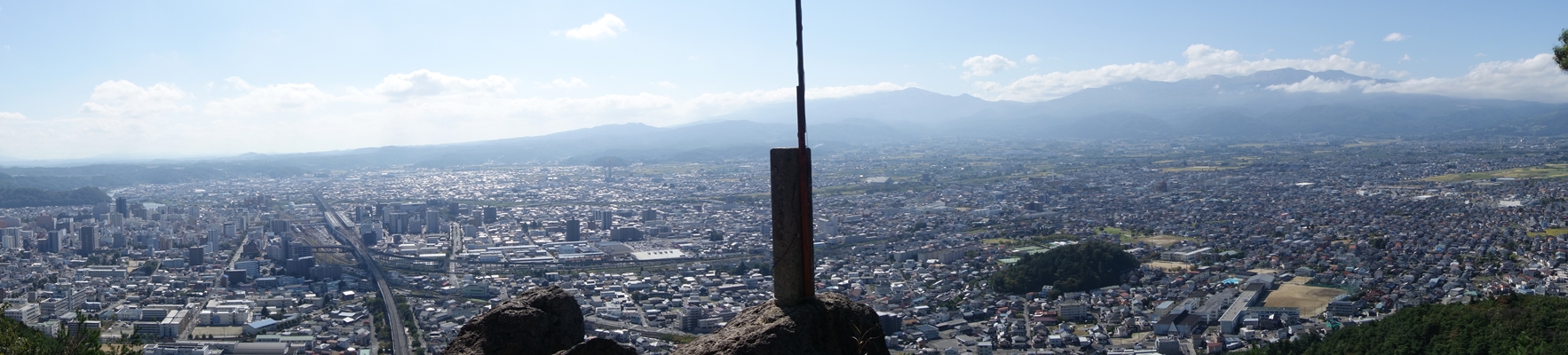 福島市の南方面。 安達太良連峰や吾妻連峰が見えています。 |