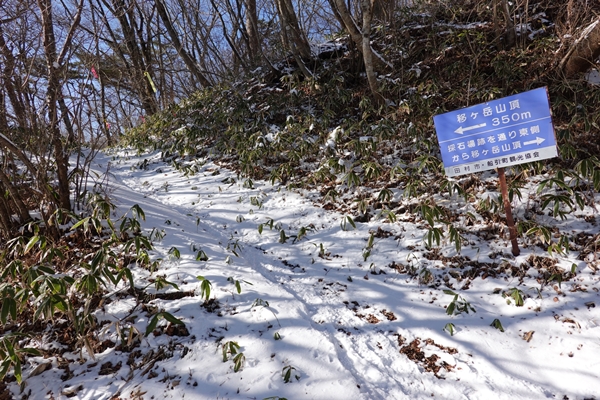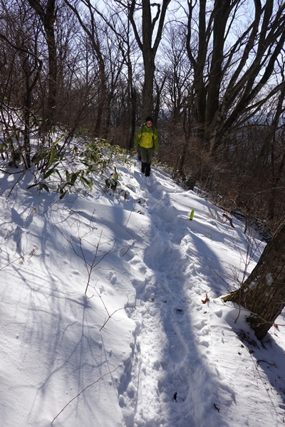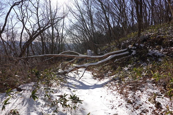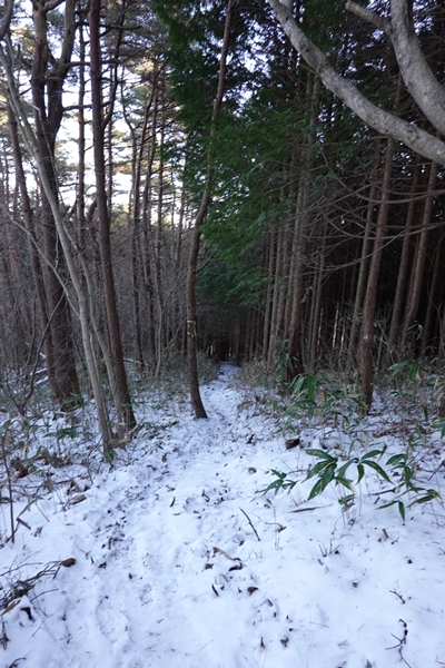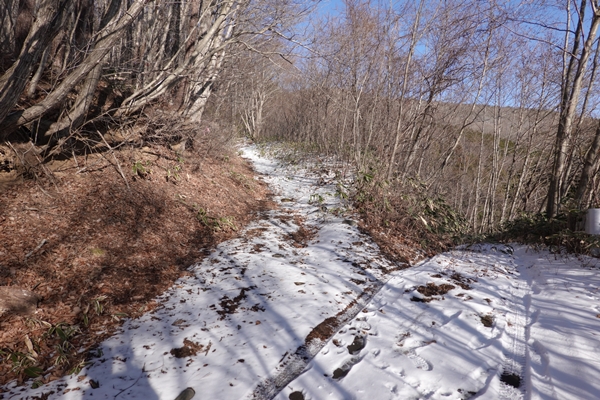 雪に覆われていますが、軽アイゼンなしでも問題ない道。 |