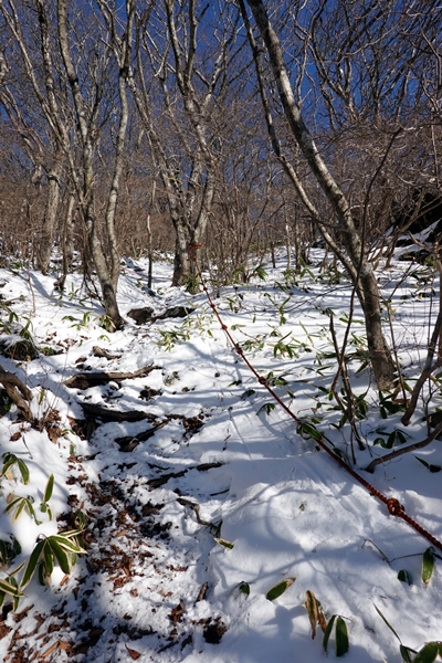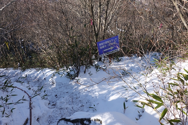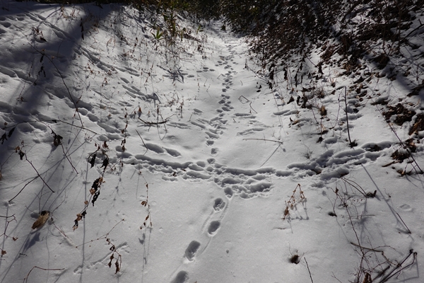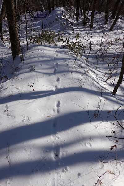 西登山口側は先行者の足跡がなく、小さな足跡だけ。 |