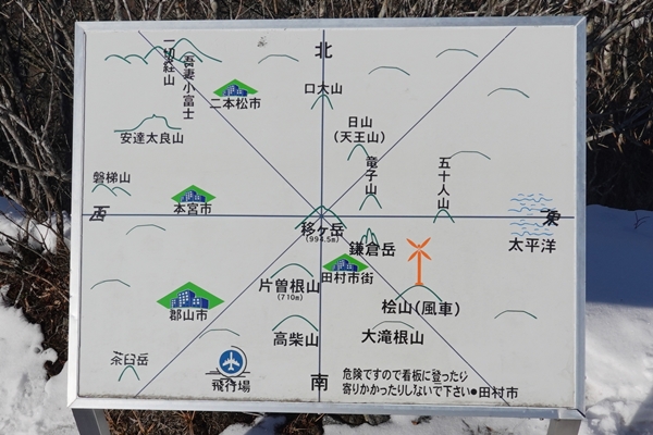 移ヶ岳から片曽根山へ移動。クマ注意の看板が沢山。 船引町の中心部からほど近いですが出るんですね。。 今は冬眠中ですかねえ。 |