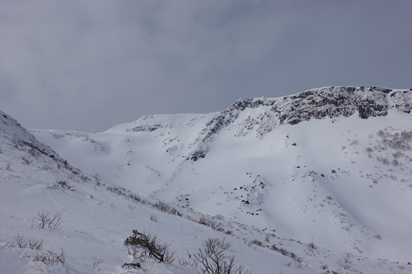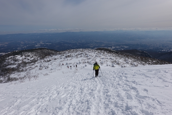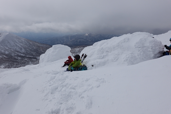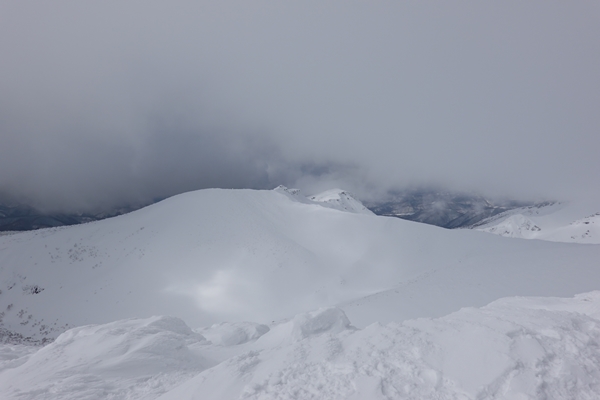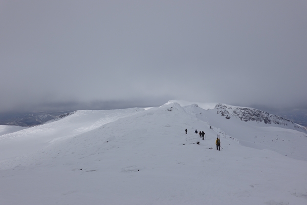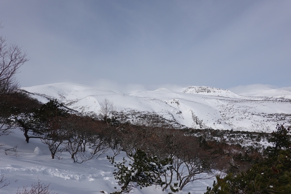 沼の平を見に稜線を進みます。 ここは風が強めで寒かったです。 |