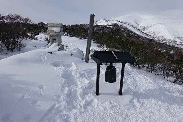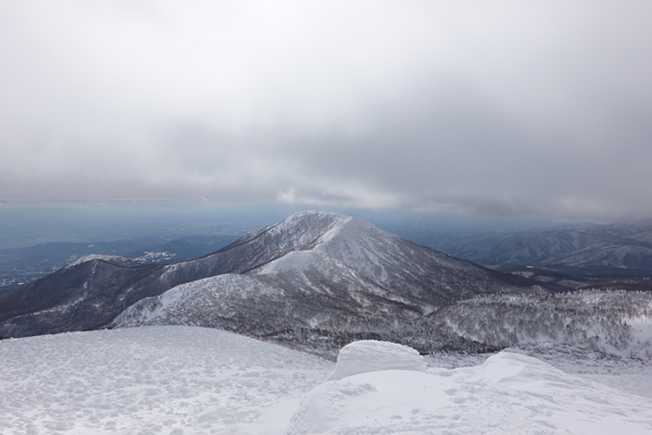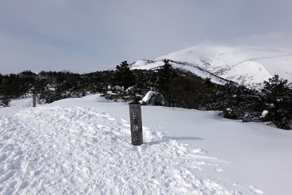 山頂到着! 妻は冬の安達太良山初登頂。 |