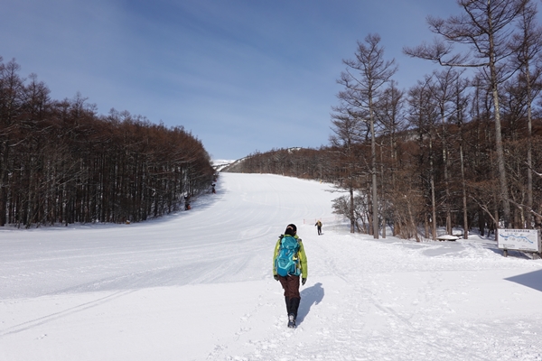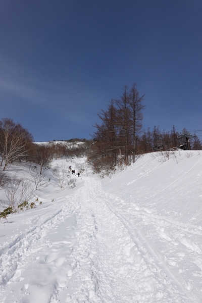 ゲレンデを横切り、登山道へ。 |