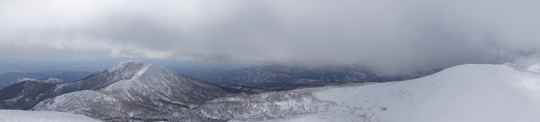 吾妻山方面・・残念ながら雲の中。 |