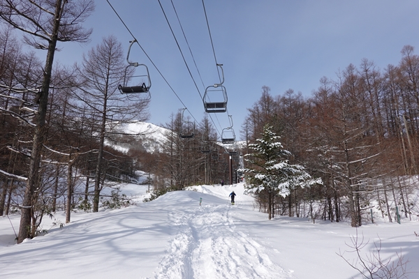 リフトの下を歩きます。 去年とは逆で時計回りです。 |