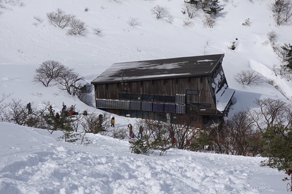 くろがね小屋到着。 雪の中の秘湯宿、泊まるのはいつの日か? |