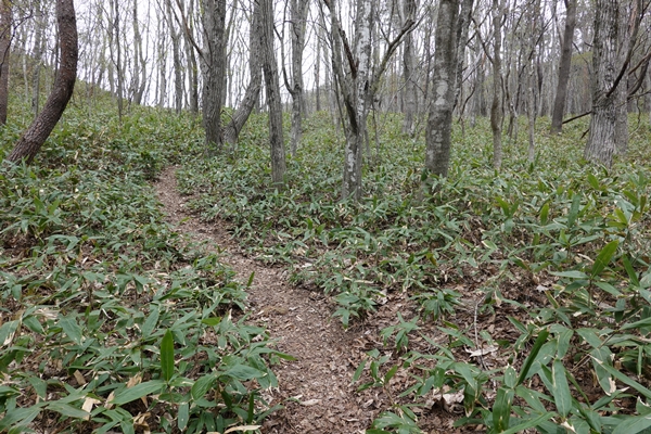 この辺りは笹原。 終始明るい感じで歩きやすい道でした。 |