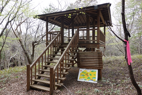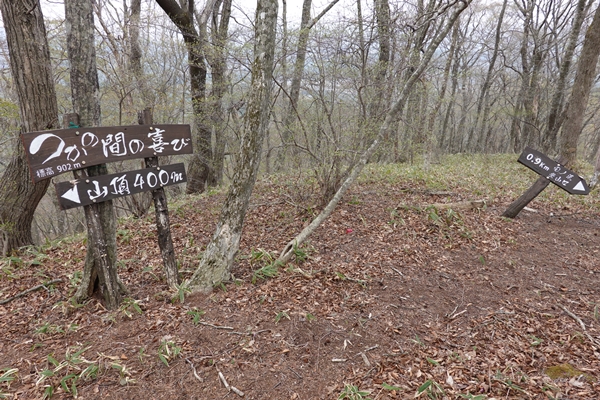 山頂の看板を見て、「最初から看板があるって早くない?」と次男。 お手軽ハイキングコースですからねえ。 |