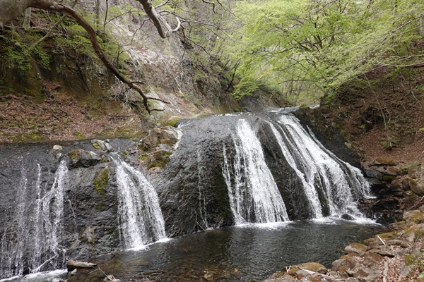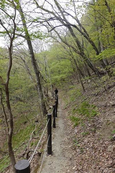もうひと歩きで駐車場の奥から不動滝へ。 |