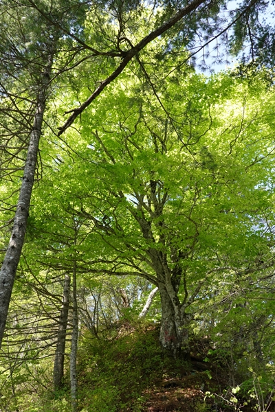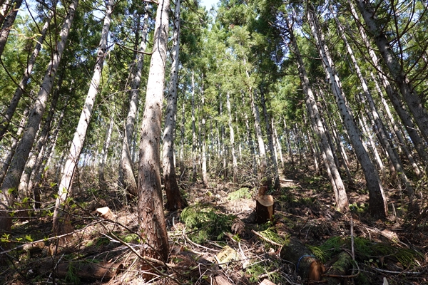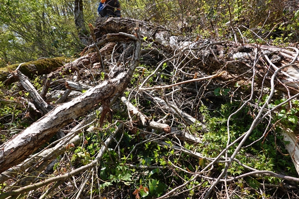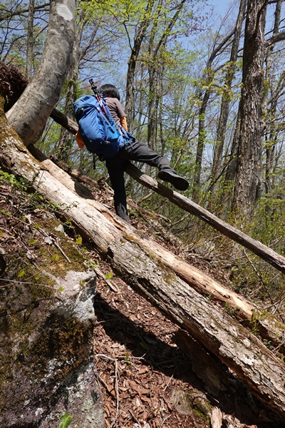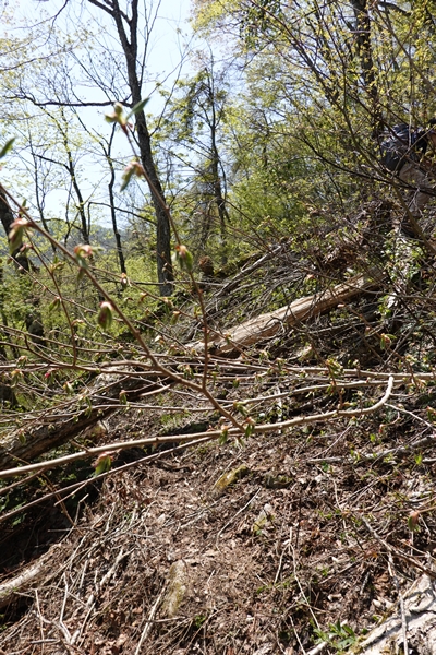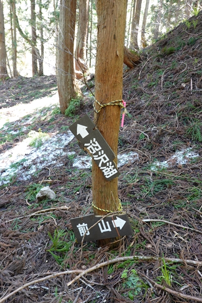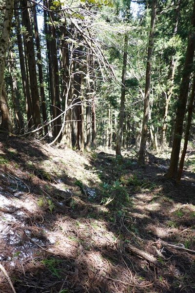 杉林の中へ。 杉林は葉が道を覆ってしまうと道が分かりにくくて、個人的にはあまり好きになれない。 踏み跡がしっかりしてるとこはいいのだけれど。 |