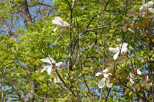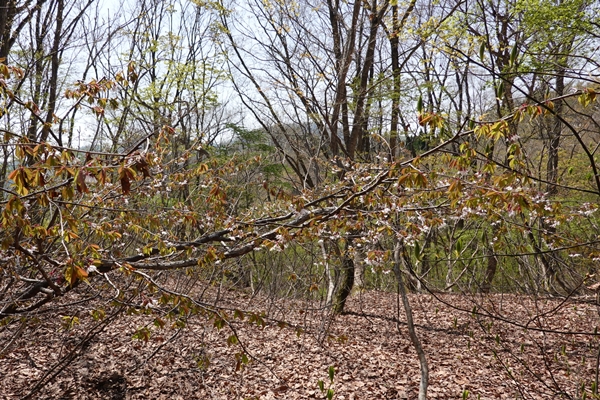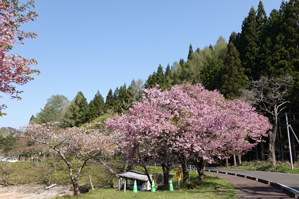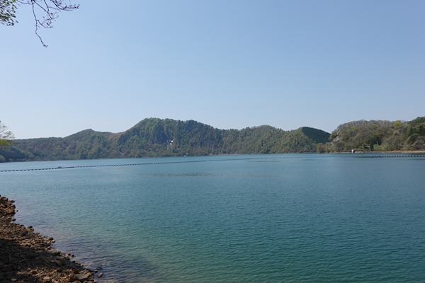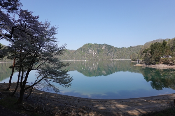 まだ桜も咲いている湖畔。 GWが見頃くらいの場所ですね。 |