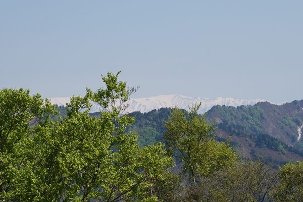 今日一のビューポイント。 真っ白なのは飯豊? |