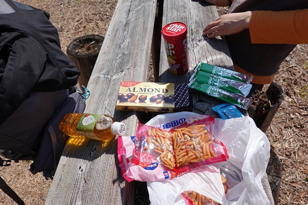 おやつ休憩。 朝は寒かったのがすっかり暑くなってきました。 |
