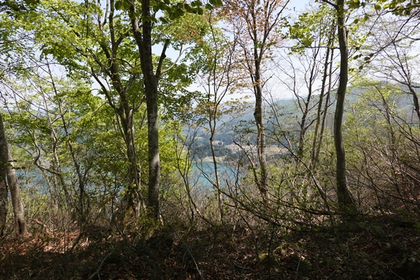 尾根に出ると歩いている間、湖が左手に見えてました。 |