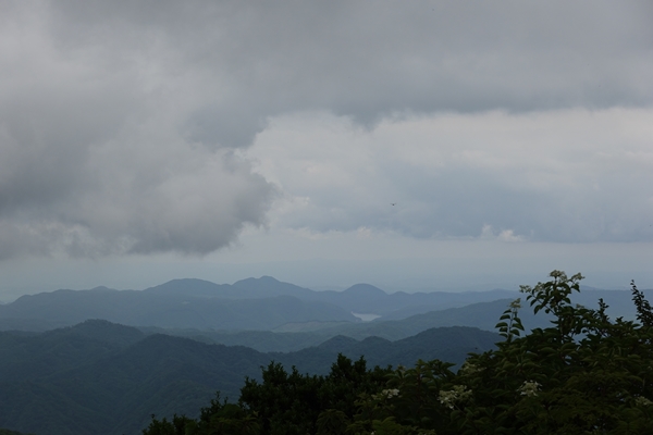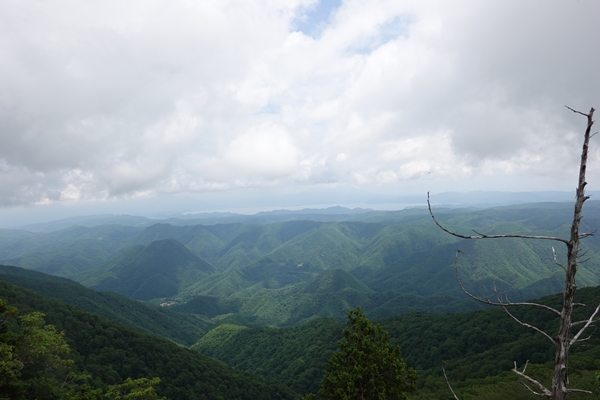 右側に二岐山、その奥が那須らしいがよく見えず。 |