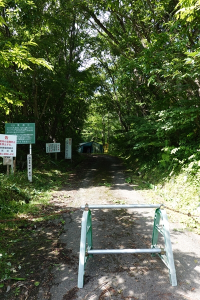 少し歩くと車止めがあり、登山者駐車場から歩いてくる必要あり。 |