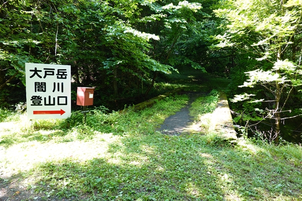 林道を20分ほど歩いて闇川登山口に到着。 |