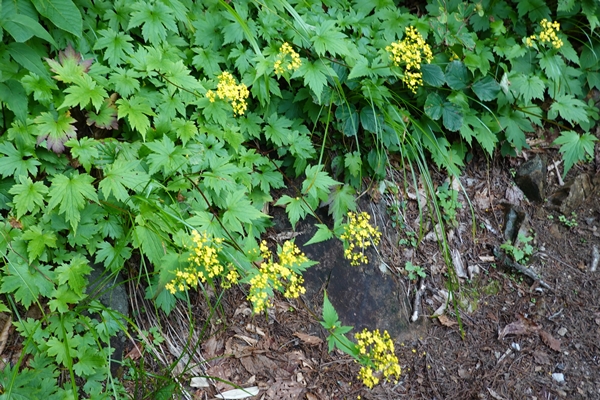 ちょっと道を間違えて戻ったり。。 ロープのある個所があったり、なかなか標高が下らない下山道がすっかり足の裏が痛い身には堪えます。 |