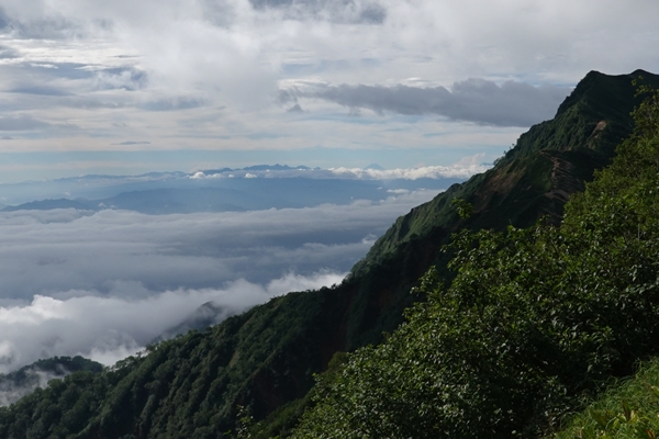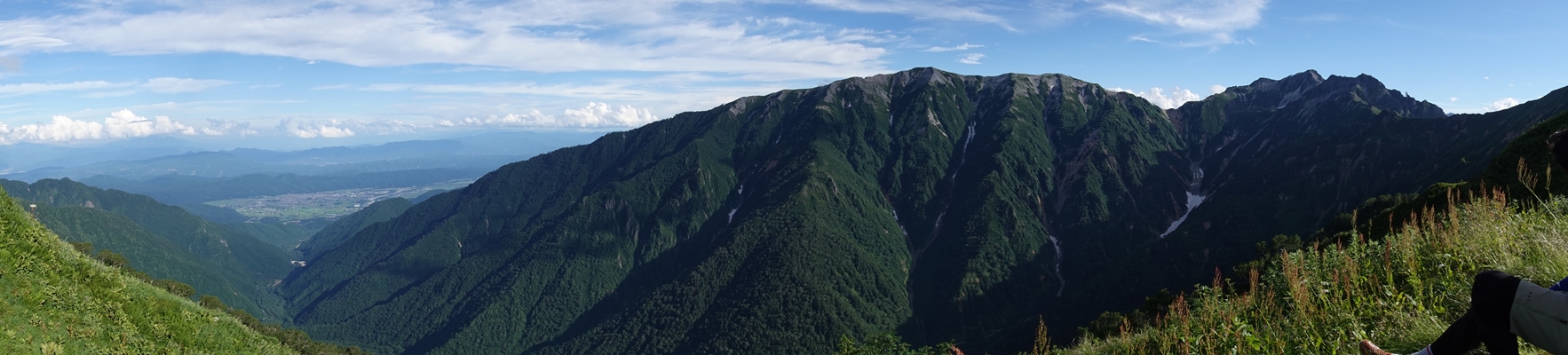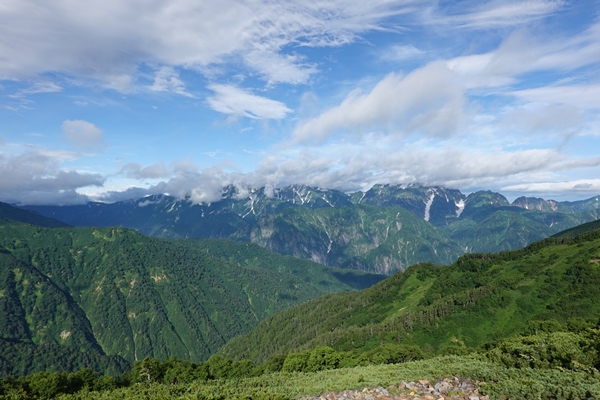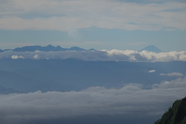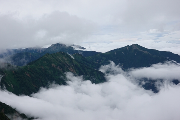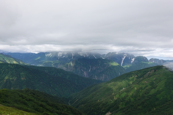 爺ヶ岳から蓮華岳にかけては見えています。 |