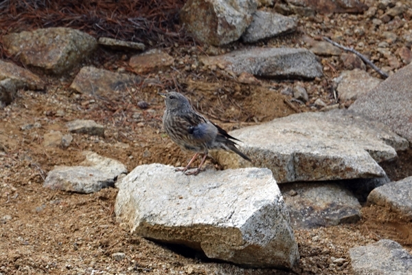 イワヒバリらしい。鳴き声はたくさん。登山道にもぴょこぴょこ。 |