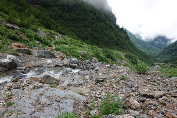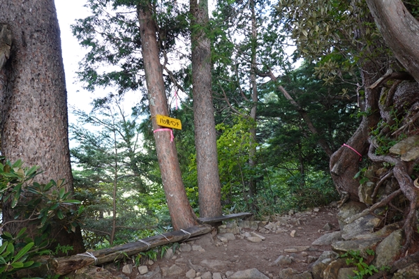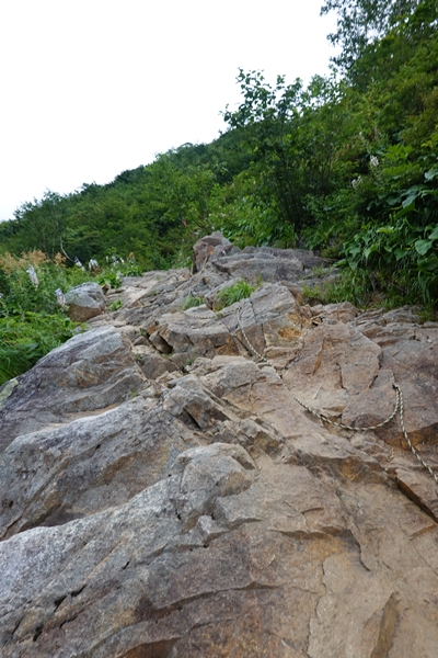 キャンプ場までもう一登り。 昔の道はほんとに崖・・よく歩いてましたね。。 左側の迂回路が立派な登山道に変わっていました。 |