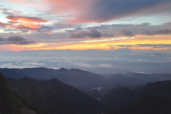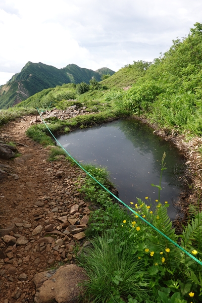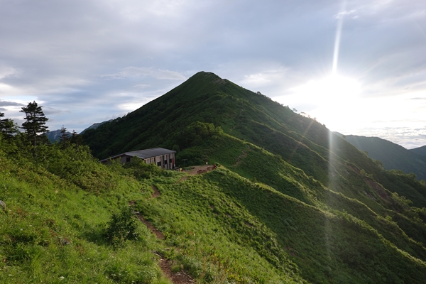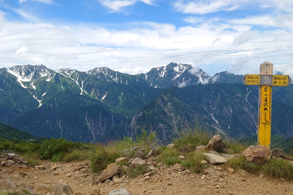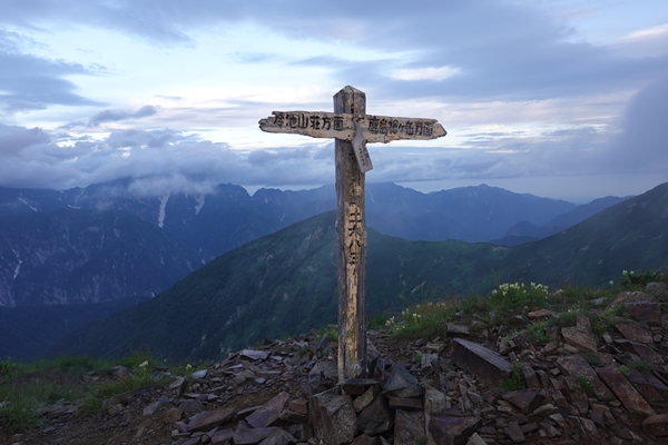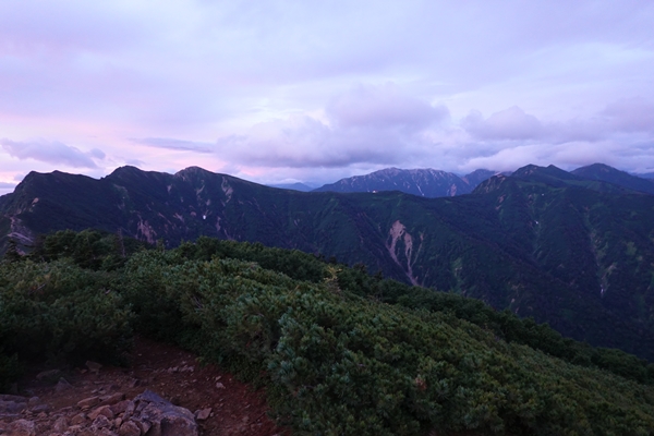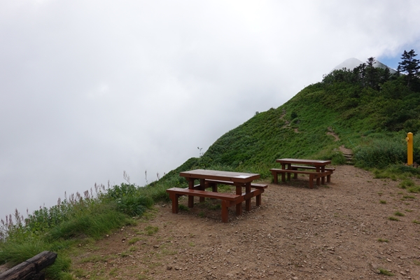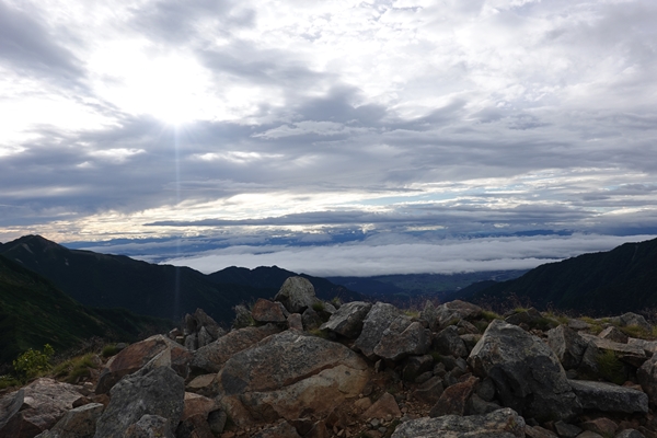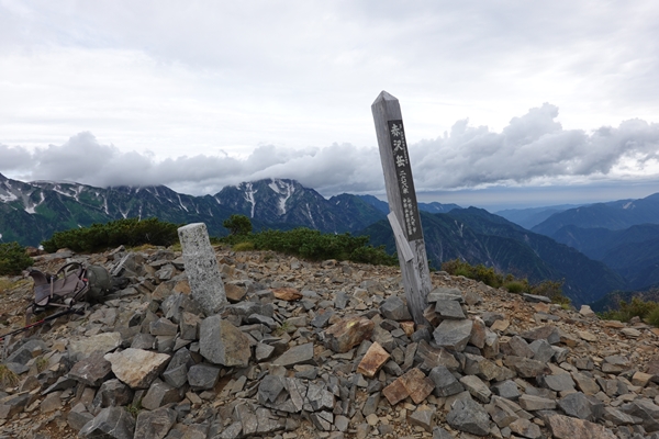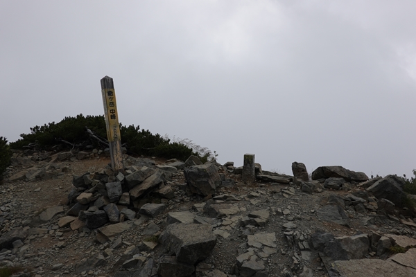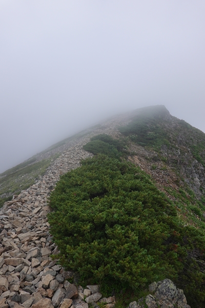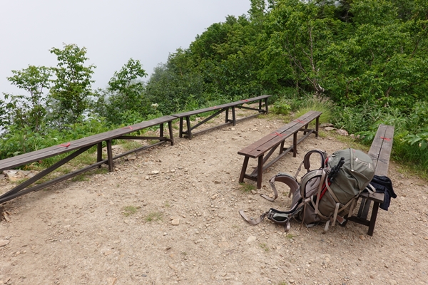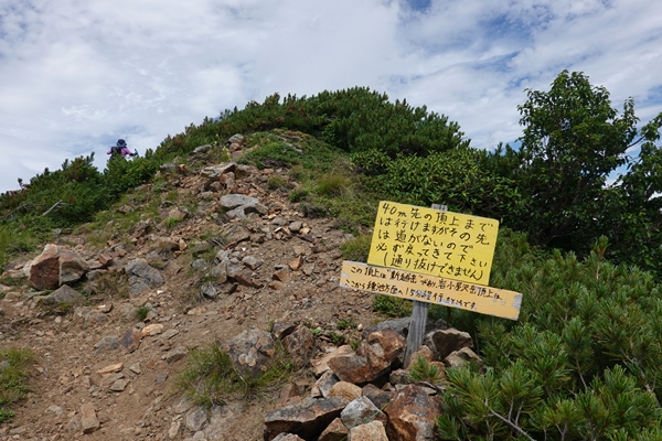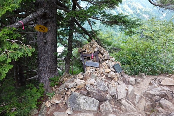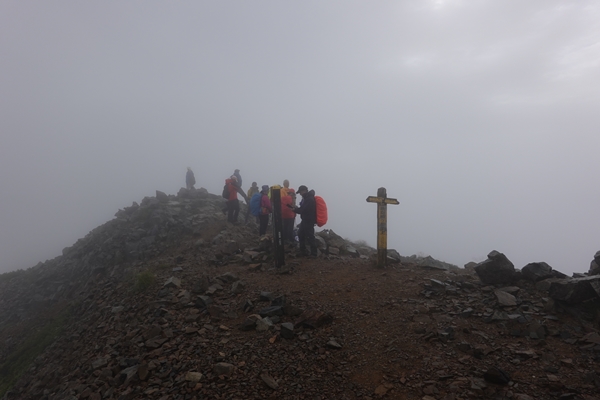 岩小屋沢岳到着。 ここでお会いした方と山荘の部屋が一緒で、翌日も似た時間に同じところを歩くことになり、励まされました。 |