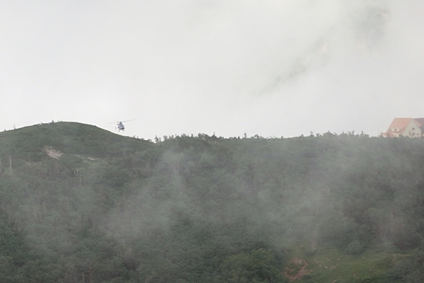 種池山荘の近くでホバリングしていたヘリ。 何をしていたのだろう? |