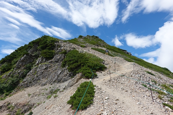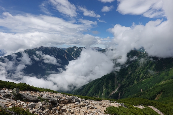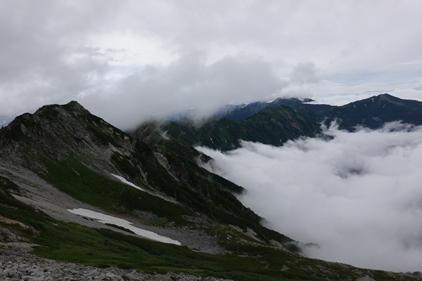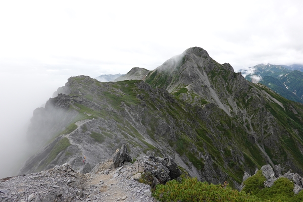 青空、ひとりきり〜 (陽水) が頭に流れそうな景色ですが、実際は荷物が重いなとぼやいているだけでした。 鹿島槍ヶ岳への道はあんなに快適だったのに・・ |