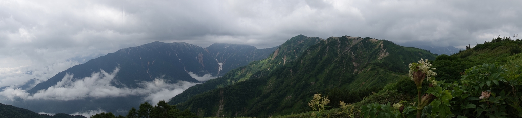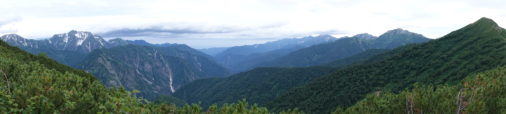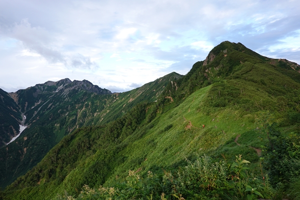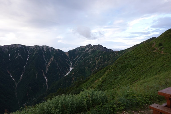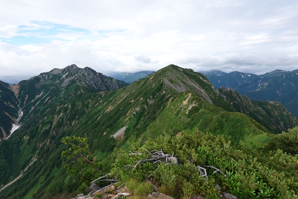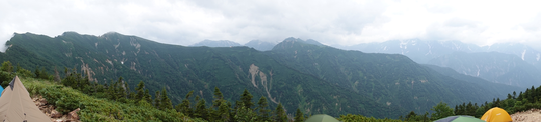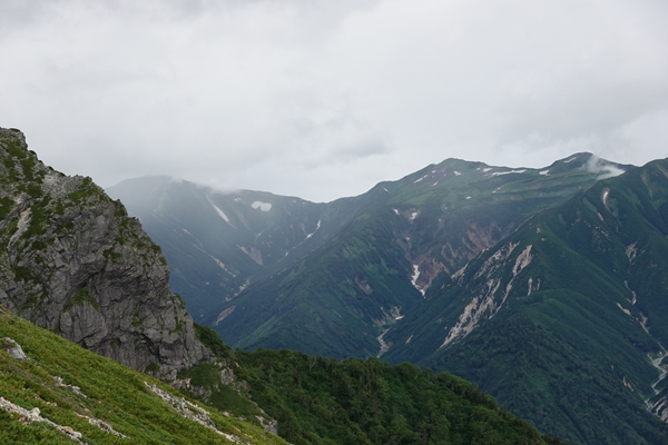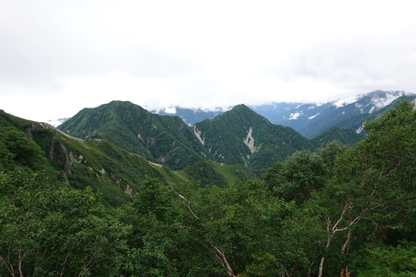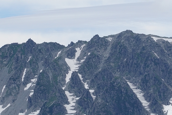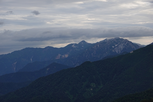 曇り空ですが、針ノ木サーキットと言われる稜線が見えています。 |