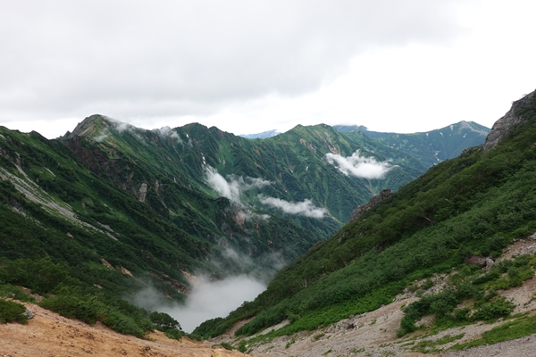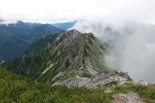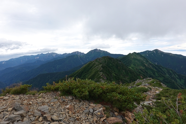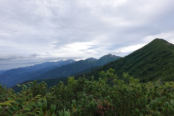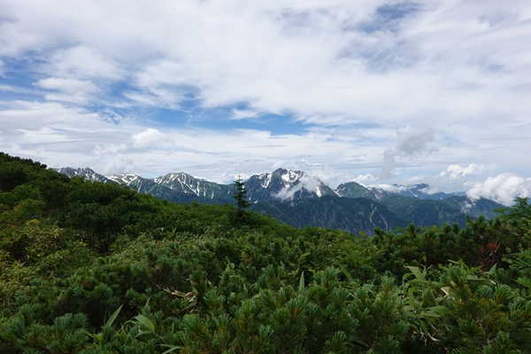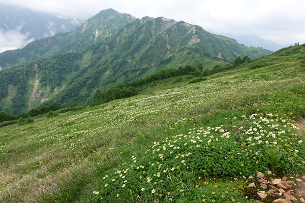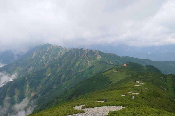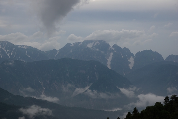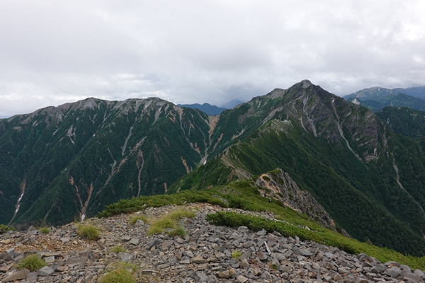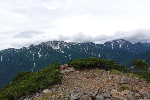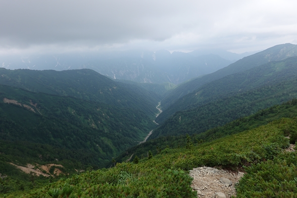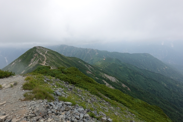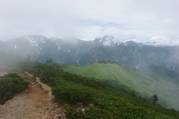 曇り空ですが、針ノ木サーキットと言われる稜線が見えています。 |