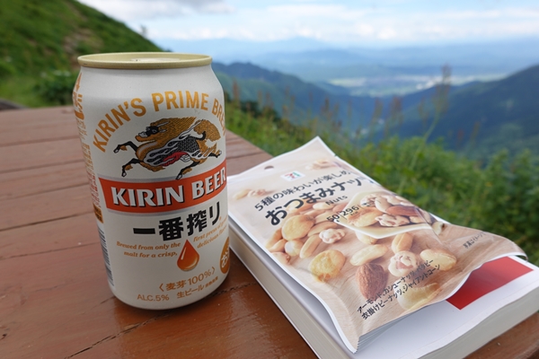 斜面がテント場で、コロナ中はMax.45張とのこと。 展望は素晴らしい立地。 トイレに行くと往復15分かかるようなところにあることだけが難点ですね。 |
