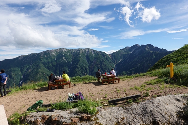 小屋の喫茶ルームからは剱岳も見えます。 |