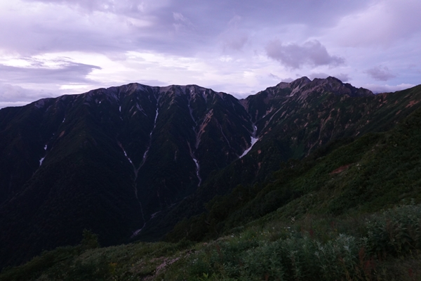 そして、暗くなる前にようやく鹿島槍ヶ岳の雄姿がやっと見れました。 |