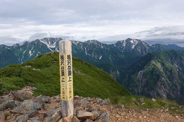 本日一つ目のピーク、鳴沢岳山頂に到着。 |