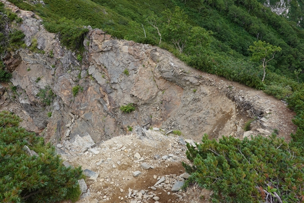 崖のふちにある道、今回の山行で一番怖かったところでした。 |