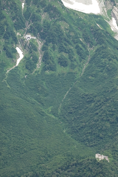 立山ロープウェイの駅が見えています。 乗ったのはちょうど13年前の8月12日でした。 その時は鹿島槍ヶ岳も針ノ木岳も名前を知りませんでした。 |