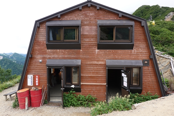 登り返して冷池山荘に到着。 久し振りのテント泊装備、重かった。。 |