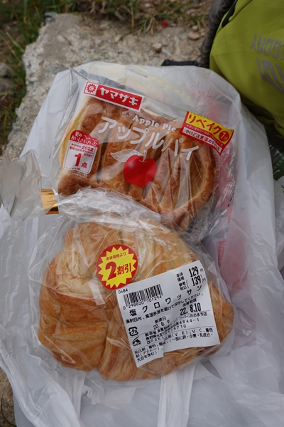 展望を見ながらクロワッサンを頂きます。 アップルパイは食べられず、翌日布引山の山頂で食べました。 |