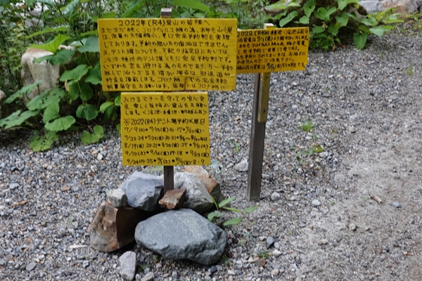 クマ出没注意の看板。 すれ違った方にさっき熊出たらしいですよと言われ、ビビりながら登りました。 ヤマレコでもこの日に熊に会われている方も、、、 |