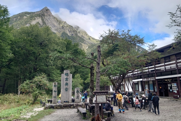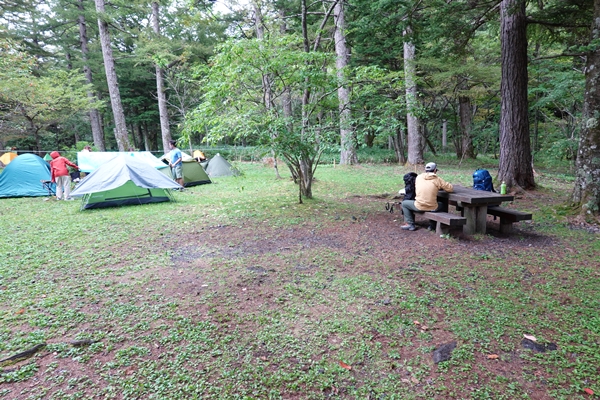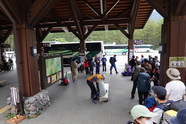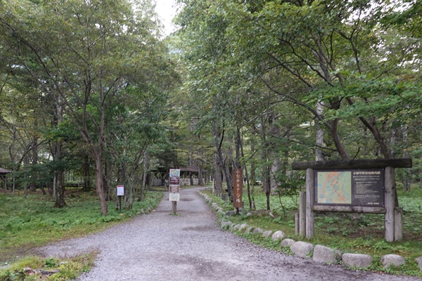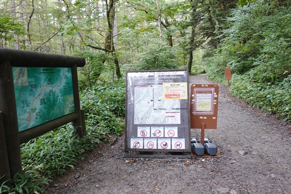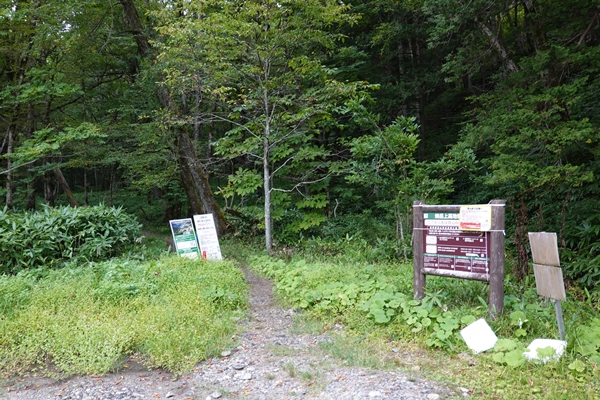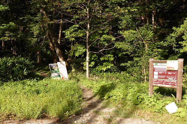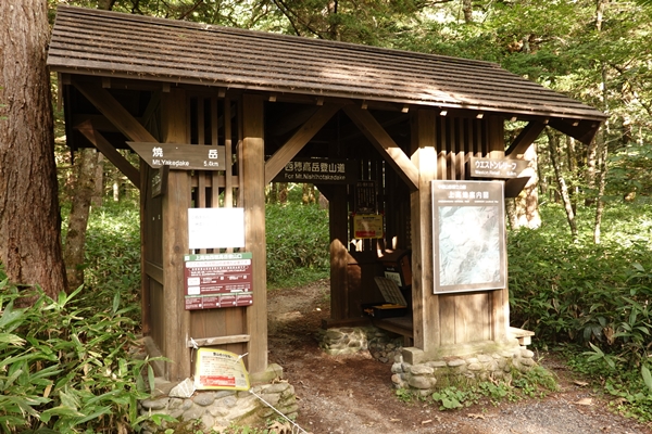 焼岳登山口に到着。キャンプ場から40分弱。 |