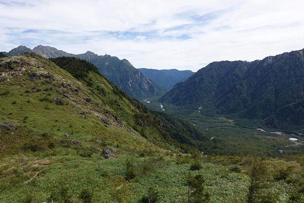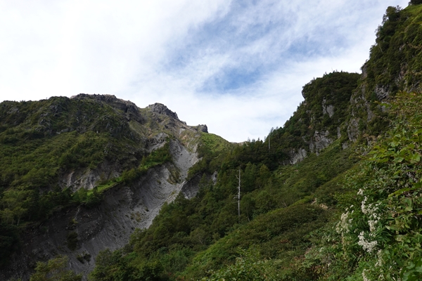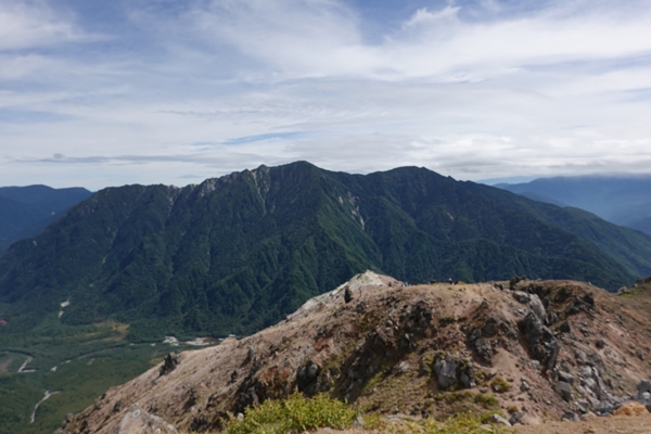 反対側には登る予定の焼岳、山頂が見えていて嬉しい。 |