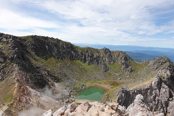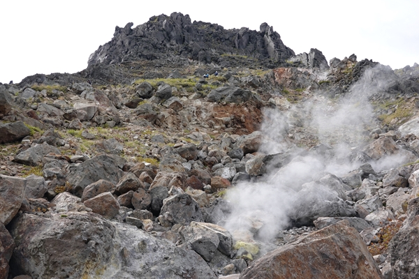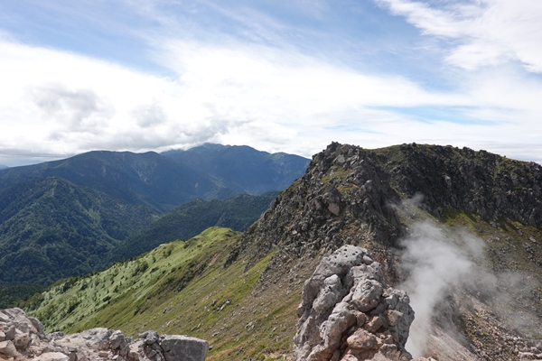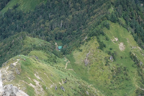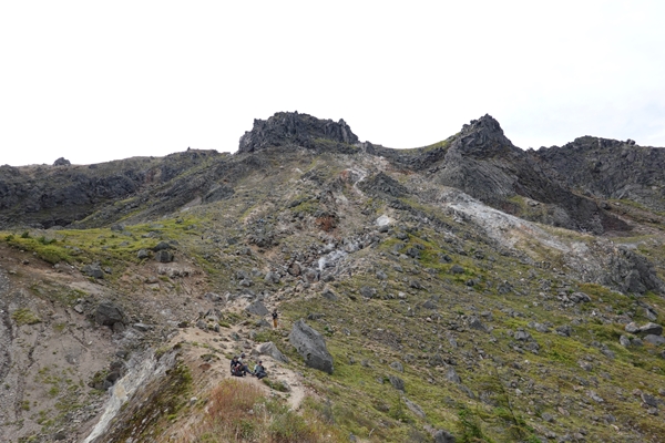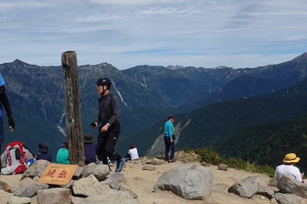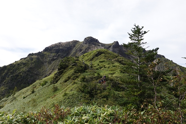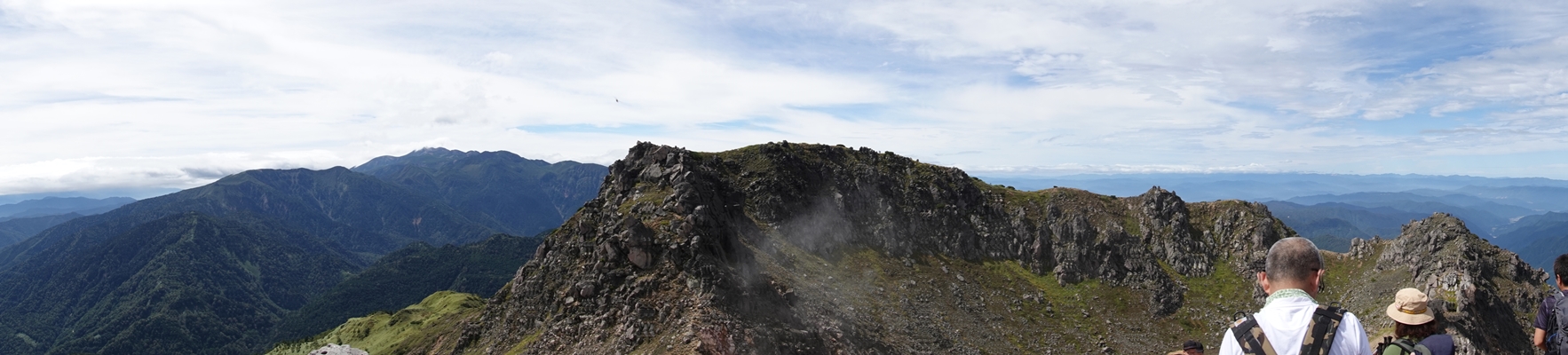 最高峰の南峰の頂上に人がいて、行こうかと思ったのですが、 ネットで調べたら一応立ち入り禁止らしいのでおとなしく戻ることにしました。 |