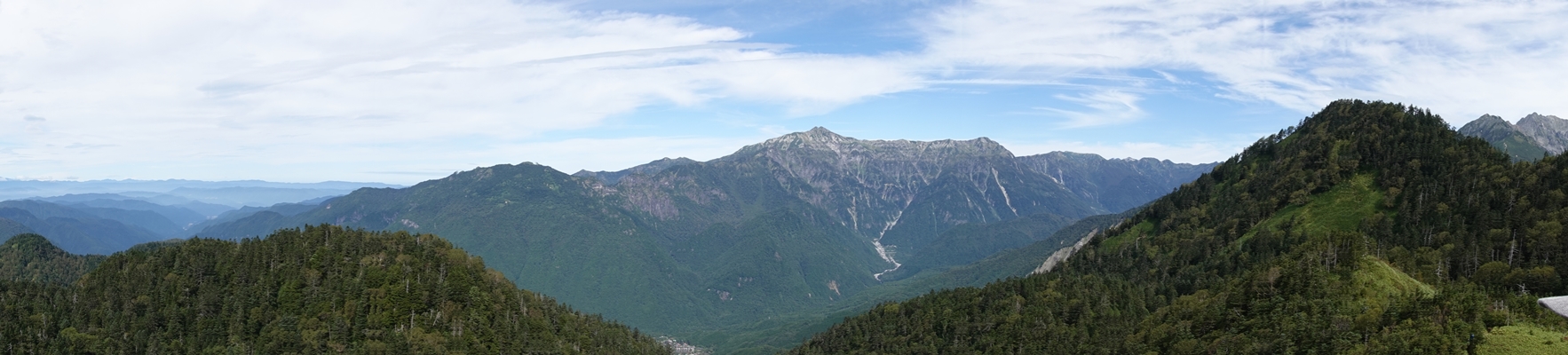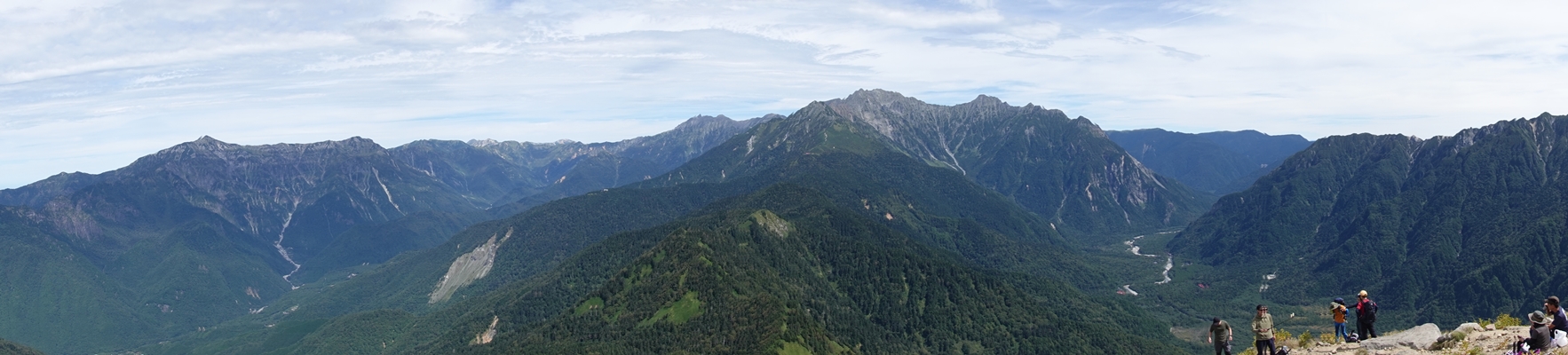 期待以上の360度の大展望が広がっております。 笠ヶ岳〜裏銀座方面〜槍ヶ岳〜穂高連峰〜蝶ヶ岳方面 |