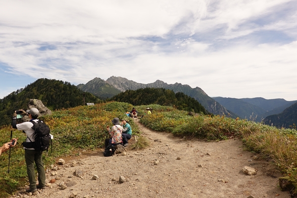 さて、焼岳に向けて出発。 青空も見えてきていて、期待大。 |