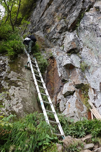 ハシゴの親分登場。 なかなかな垂直梯子です。 |