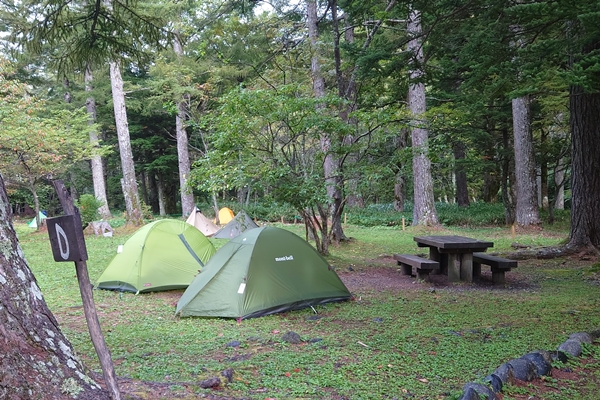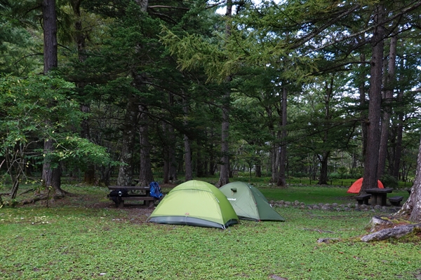 設営完了。 サイトが広い上にドフラット、快適なキャンプ場です。 |