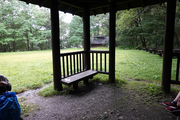 雨が激しくなってしまい、東屋で雨宿り。 |