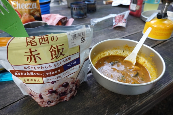 そのまま夕食を食べ、19時前には就寝。アマノフーズのカレー、いけてる。 |