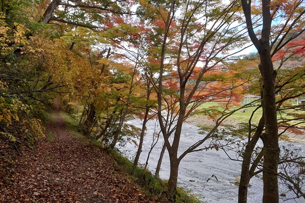 色付く川沿いの道を歩いて・・ |