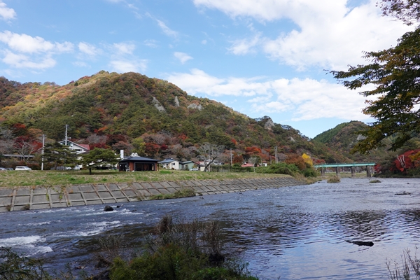 橋を渡って矢祭山を振りかえる |